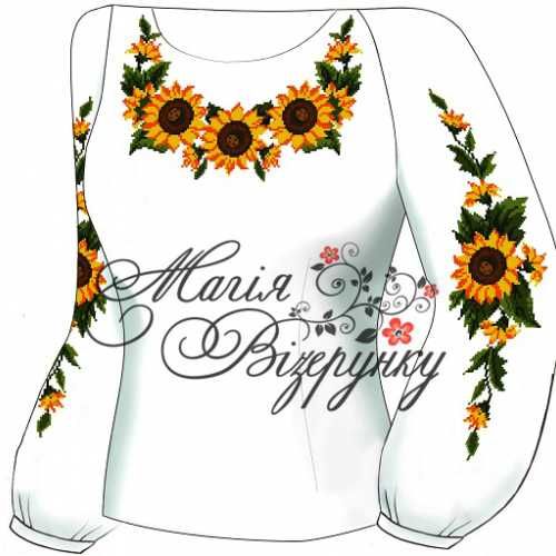 В комплект заготовки женской вышиванки входит 4 отреза домотканного полотна с нанесенной цветной схемой-орнаментом: два рукава (75х65см), передняя часть и спинка (75х75см). Комплектуется инструкцией с указанием количества бисера и номеров мулине DMC.