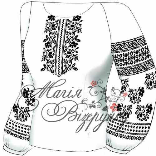 В комплект заготовки женской вышиванки входит 4 отреза домотканного полотна с нанесенной цветной схемой-орнаментом: два рукава (75х65см), передняя часть и спинка (75х75см). Комплектуется инструкцией с указанием количества бисера и номеров мулине DMC.