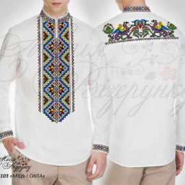 В комплект заготовки мужской вышиванки входит 4 отреза домотканного полотна (по 75х80см) с нанесенной цветной схемой-орнаментом на рукава, переднюю часть и спинку, манжеты и воротничок и инструкция с указанием количества бисера и номеров мулине DMC.