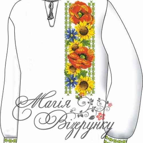 В комплект заготовки мужской вышиванки входит 4 отреза домотканного полотна (по 75х80см) с нанесенной цветной схемой-орнаментом на рукава, переднюю часть и спинку, манжеты и воротничок и инструкция с указанием количества бисера и номеров мулине DMC.