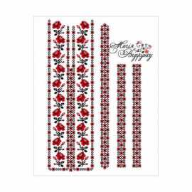 В комплект заготовки мужской вышиванки входит 4 отреза домотканного полотна (по 75х80см) с нанесенной цветной схемой-орнаментом на рукава, переднюю часть и спинку, манжеты и воротничок и инструкция с указанием количества бисера и номеров мулине DMC.