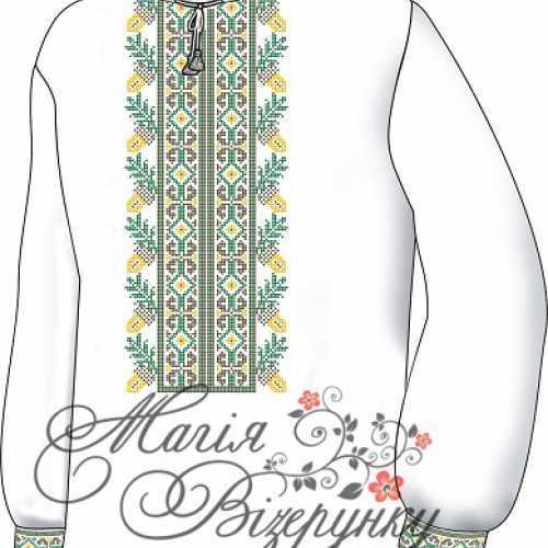 В комплект заготовки мужской вышиванки входит 4 отреза домотканного полотна (по 75х80см) с нанесенной цветной схемой-орнаментом на рукава, переднюю часть и спинку, манжеты и воротничок и инструкция с указанием количества бисера и номеров мулине DMC.