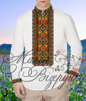 В комплект заготовки мужской вышиванки входит 4 отреза домотканного полотна (по 75х80см) с нанесенной цветной схемой-орнаментом на рукава, переднюю часть и спинку, манжеты и воротничок и инструкция с указанием количества бисера и номеров мулине DMC.