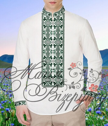 В комплект заготовки мужской вышиванки входит 4 отреза домотканного полотна (по 75х80см) с нанесенной цветной схемой-орнаментом на рукава, переднюю часть и спинку, манжеты и воротничок и инструкция с указанием количества бисера и номеров мулине DMC.