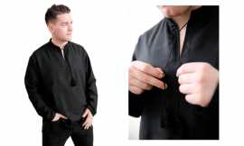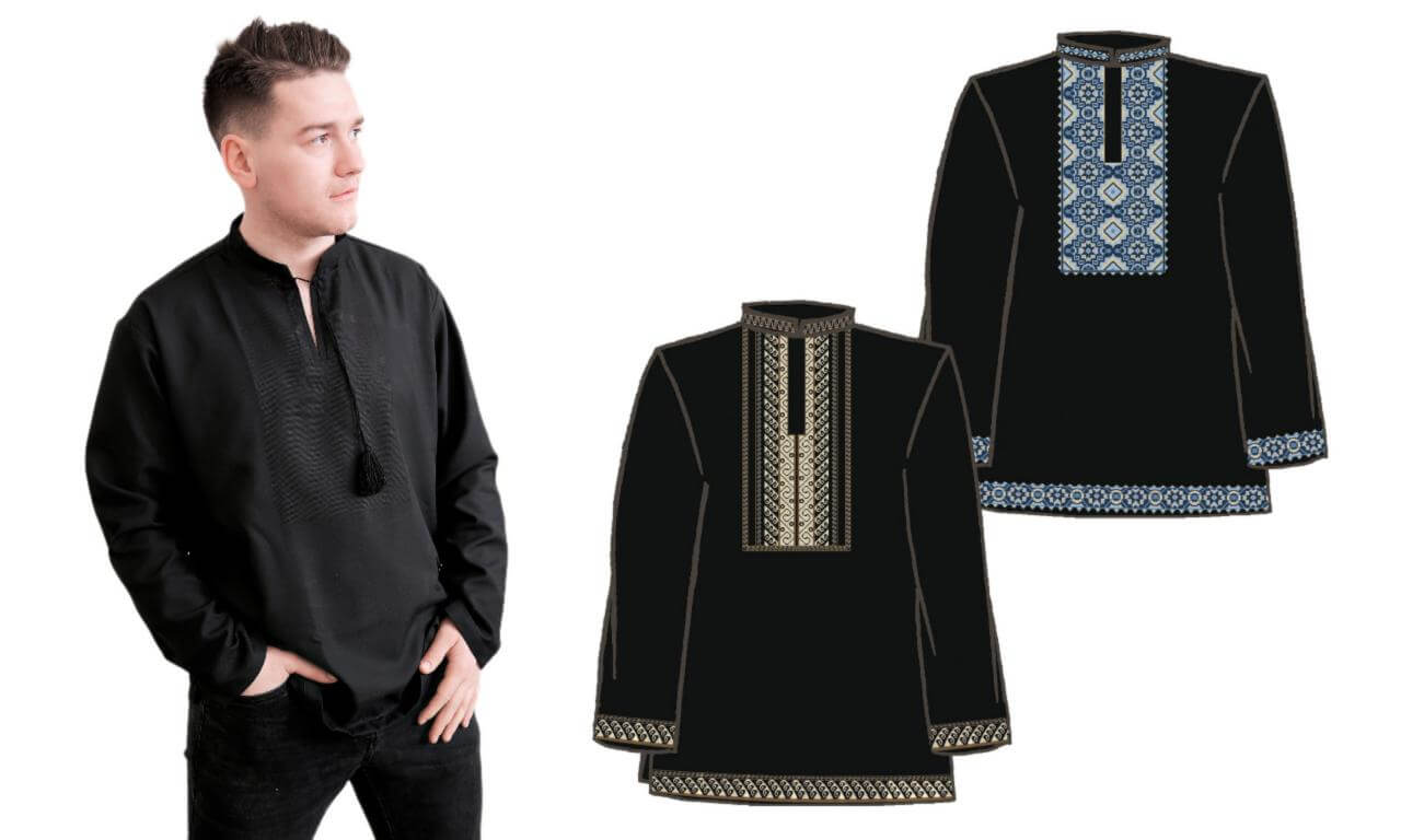 Готовая мужская сорочка ТМ Чарівна мить с длинным рукавом под вышивку нитками мулине или бисером со вставками канвы на рукавах, воротнике, груди и внизу, доступны размеры от 44 до 62.