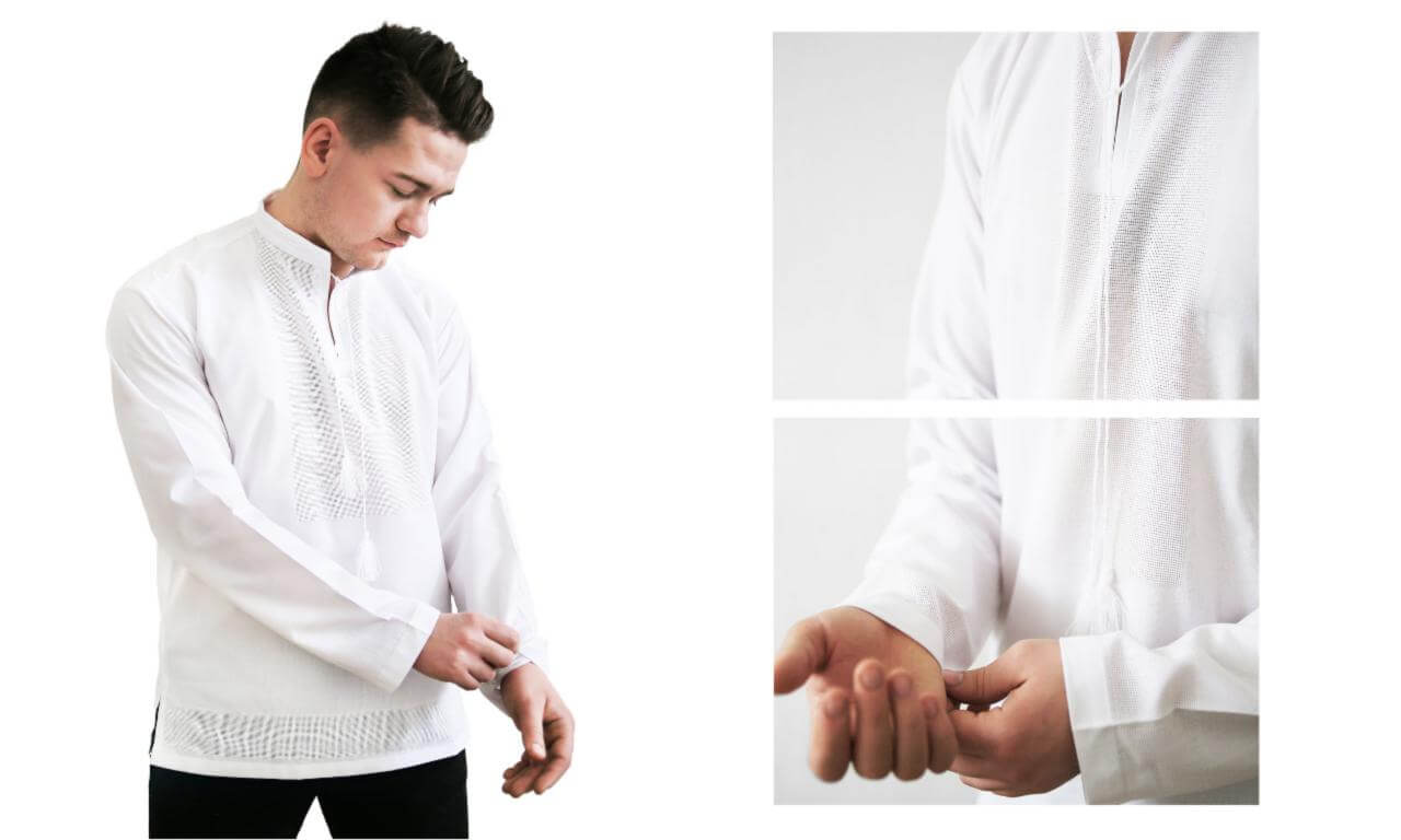 Готовая мужская сорочка ТМ Чарівна мить с длинным рукавом под вышивку нитками мулине или бисером со вставками канвы на рукавах, воротнике, груди и внизу, доступны размеры от 44 до 62.