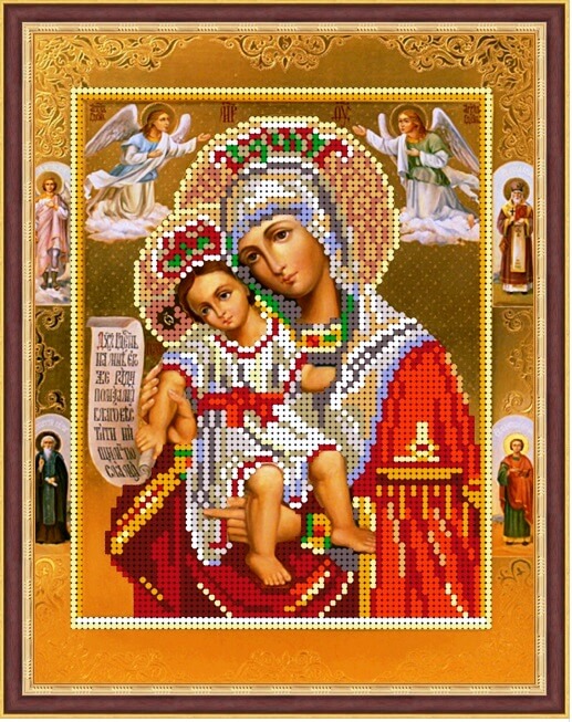 Схема для вышивки бисером Божия Матерь Достойно Есть-2 ТМ I.B.Studio выполнена на габардине, бродублированном флизелином и с прооверлоченными краями. Формат А4. Количество цветов бисера - 13.