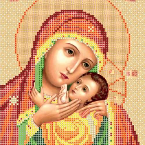 Схема для вышивки бисером на атласной ткани Божия Матерь Касперовская киевского производителя Повитруля. На схеме указаны цвета и требуемое количество бисера (№10, Preciosa).