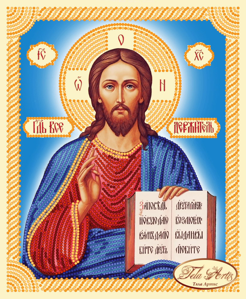 Схема для вышивки бисером Господь Вседержитель выполнена на плотном атласе, продублированном флизелином. Края всех схем Тэла Артис запаяны и не сыпятся в процессе вышивания. На схеме указаны количество и рекомендуемые цвета бисера Preciosa.