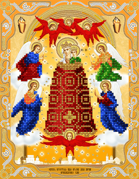 Схема для вышивания бисером Икона Божией Матери Добавление ума ТМ А-строчка выполнена из плотного атласа с нанесением яркой полноцветной печати высококачественными красками и содержит инструкцию.