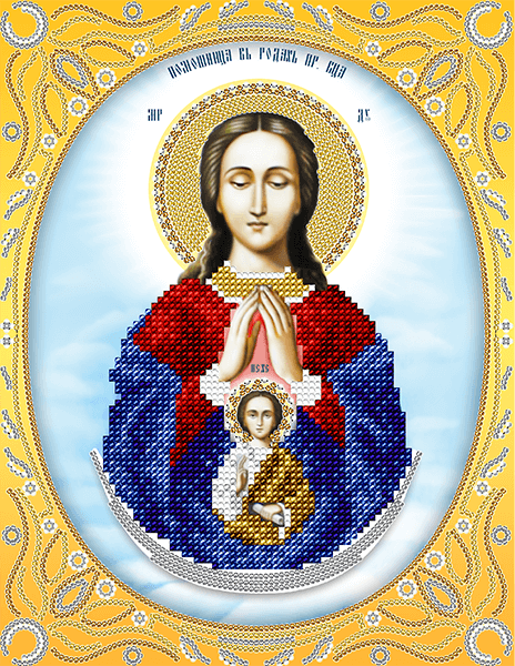 Схема для вышивания бисером Икона Божией Матери Помощница в родах (золото) ТМ А-строчка выполнена из плотного атласа с нанесением яркой полноцветной печати высококачественными красками и содержит инструкцию.