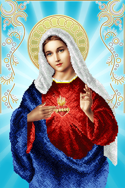 Схема для вышивания бисером Непорочное Сердце Марии ТМ А-строчка выполнена из плотного атласа с нанесением яркой полноцветной печати высококачественными красками и содержит инструкцию.
