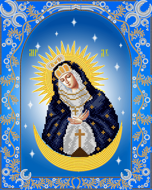 Схема для вышивания бисером Остробрамская икона Божией Матери ТМ А-строчка выполнена из плотного атласа с нанесением яркой полноцветной печати высококачественными красками и содержит инструкцию.