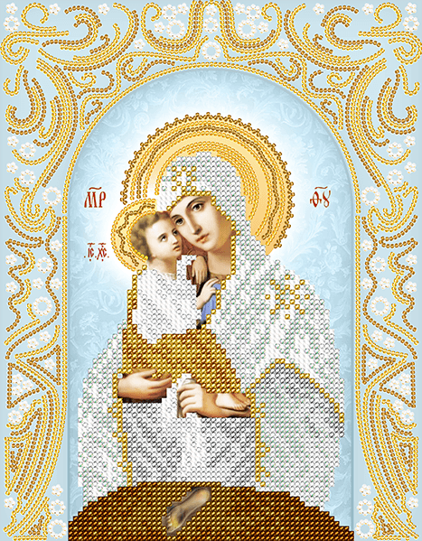 Схема для вышивания бисером Почаевская икона Божией Матери (серебро), AC4-126, 19х25см, А-строчка