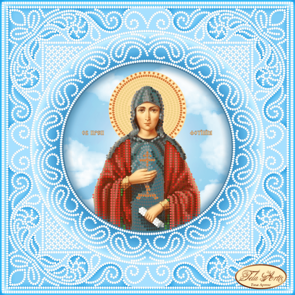 Схема для вышивания бисером Святая Преподобная Фотиния (Светлана) (голубой фон), ТИС-019(1), 24х24см, Тэла Артис