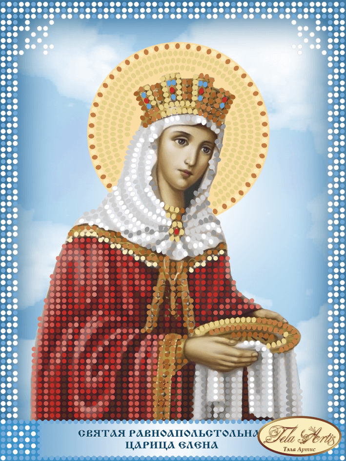 Схема для вышивки бисером Святая Равноапостольная Царица Елена (голубой фон) выполнена на плотном атласе, продублированном флизелином. Края всех схем Тэла Артис запаяны и не сыпятся в процессе вышивания. На схеме указаны количество и рекомендуемые цвета бисера Preciosa.