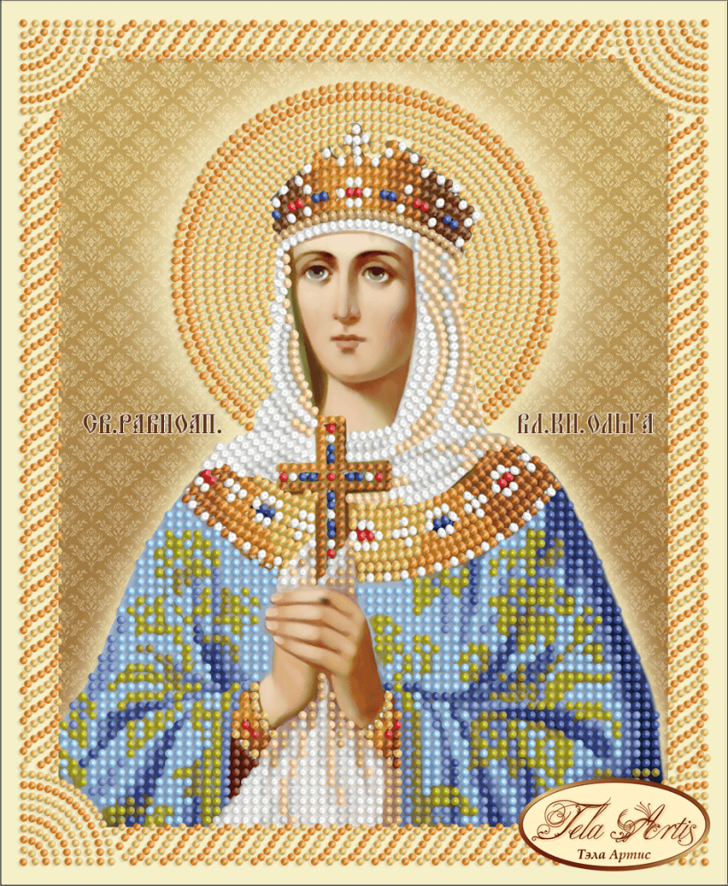 Схема для вышивания бисером Святая Равноапостольная Великая Княгиня Ольга (золотой фон), ТИМ-042, 16х19.5см, Тэла Артис