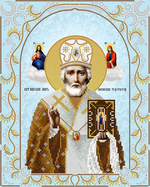 Схема для вышивания бисером Святой Николай Чудотворец (серебро), AC3-027, 33х26см, А-строчка