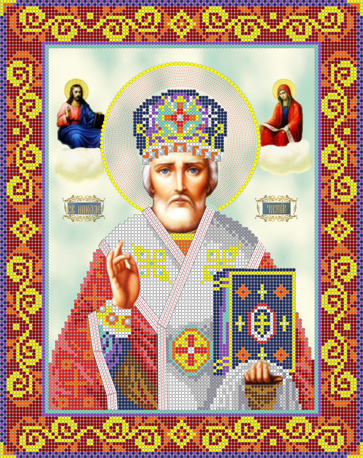 Схема для вышивки бисером Святой Николай Чудотворец ТМ Картины Бисером выполнена на высококачественном габардине. Каждая схема комплектуется инструкцией и картой рекомендованных цветов с указанием количества и веса бисера.