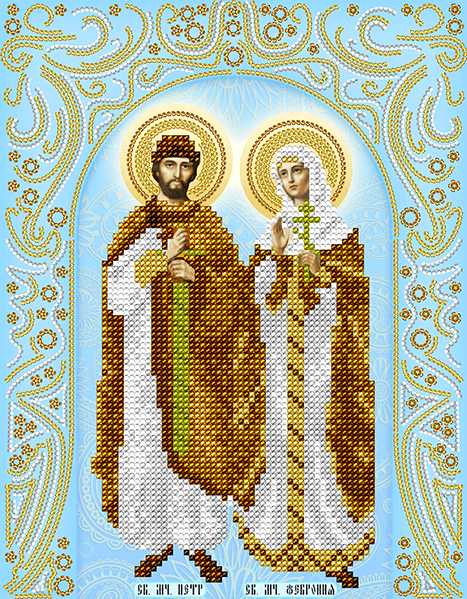 Схема для вышивания бисером Святые Пётр и Феврония (серебро) ТМ А-строчка выполнена из плотного атласа с нанесением яркой полноцветной печати высококачественными красками и содержит инструкцию.
