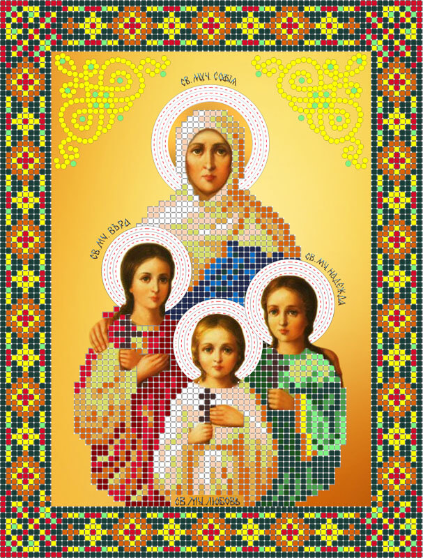 Схема для вышивки бисером Св. Вера, Надежда, Любовь и Софья ТМ Картины Бисером выполнена на высококачественном габардине. Каждая схема комплектуется инструкцией и картой рекомендованных цветов с указанием количества и веса бисера.