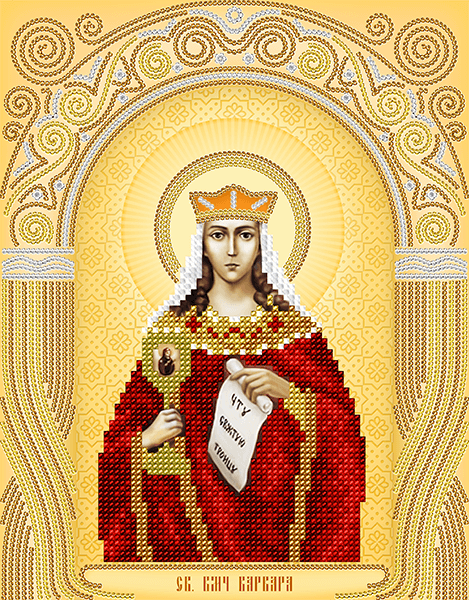 Схема для вышивания бисером Св. Вмч. Варвара ТМ А-строчка выполнена из плотного атласа с нанесением яркой полноцветной печати высококачественными красками и содержит инструкцию.