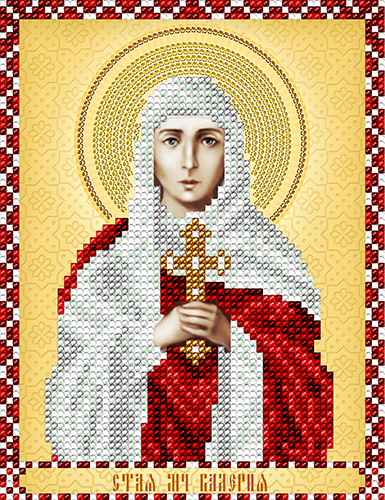 Схема для вышивания бисером Св. Мученица Валерия (Калерия) ТМ А-строчка выполнена из плотного атласа с нанесением яркой полноцветной печати высококачественными красками и содержит инструкцию.