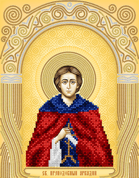 Схема для вышивания бисером Св. Преподобный Аркадий ТМ А-строчка выполнена из плотного атласа с нанесением яркой полноцветной печати высококачественными красками и содержит инструкцию.