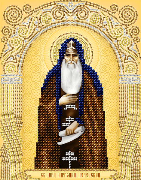 Схема для вышивания бисером Св. Прп. Антоний Печерский ТМ А-строчка выполнена из плотного атласа с нанесением яркой полноцветной печати высококачественными красками и содержит инструкцию.