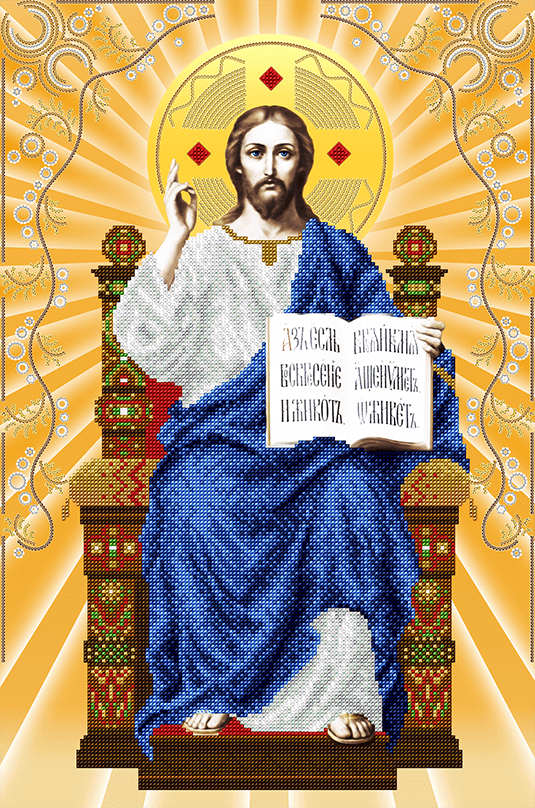 Схема для вышивания бисером Спаситель на престоле ТМ А-строчка выполнена из плотного атласа с нанесением яркой полноцветной печати высококачественными красками и содержит инструкцию.