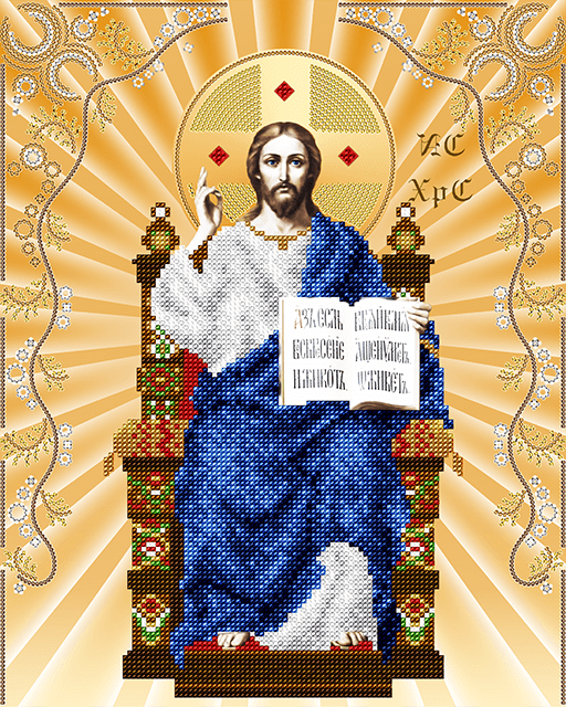 Схема для вышивания бисером Спаситель на престоле ТМ А-строчка выполнена из плотного атласа с нанесением яркой полноцветной печати высококачественными красками и содержит инструкцию.