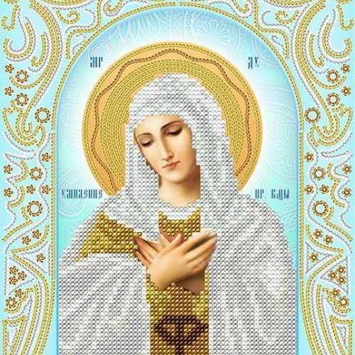 Схема для вышивания бисером Умиление Пресвятой Богородицы (серебро) компании А-строчка выполнена из плотного атласа с нанесением яркой полноцветной печати высококачественными красками и содержит инструкцию.