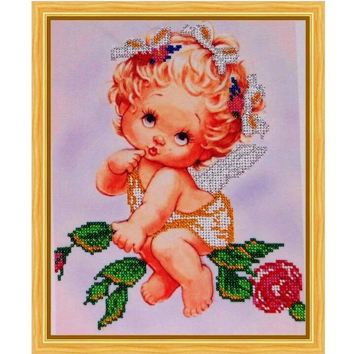 Схема для вышивки бисером Ангелок на ветке ТМ I.B.Studio выполнена на габардине, бродублированном флизелином и с прооверлоченными краями. Формат А4. Количество цветов бисера - 8.