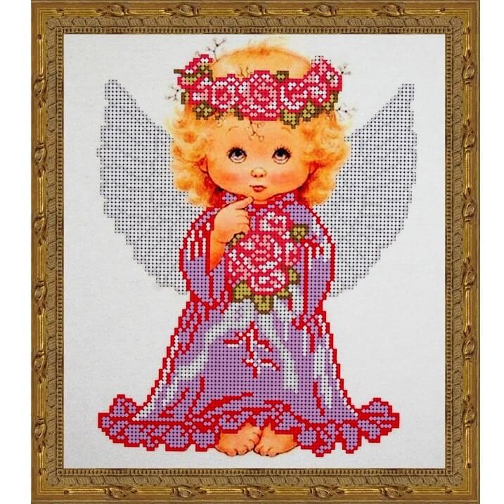 Схема для вышивки бисером Ангелок с букетом ТМ I.B.Studio выполнена на габардине, бродублированном флизелином и с прооверлоченными краями. Формат А4. Количество цветов бисера - 8.
