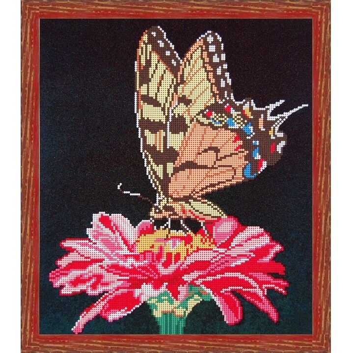 Схема для вышивки бисером Бабочка на цветке ТМ I.B.Studio выполнена на габардине, бродублированном флизелином и с прооверлоченными краями. Формат А3. Количество цветов бисера - 13.