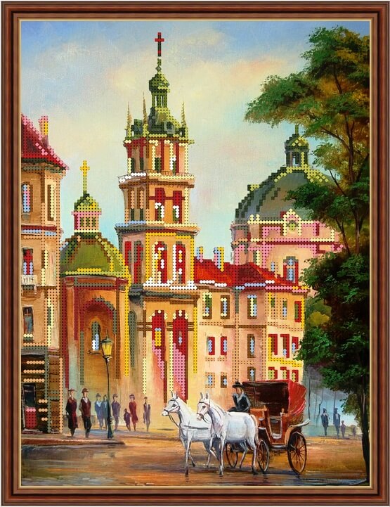 Схема для вышивки бисером Белые лошадки ТМ I.B.Studio выполнена на габардине, бродублированном флизелином и с прооверлоченными краями. Формат А3. Количество цветов бисера - 13.