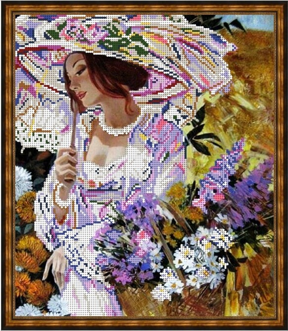 Схема для вышивки бисером Дама под зонтиком, 29х34см, Б-3190, I.B.Studio