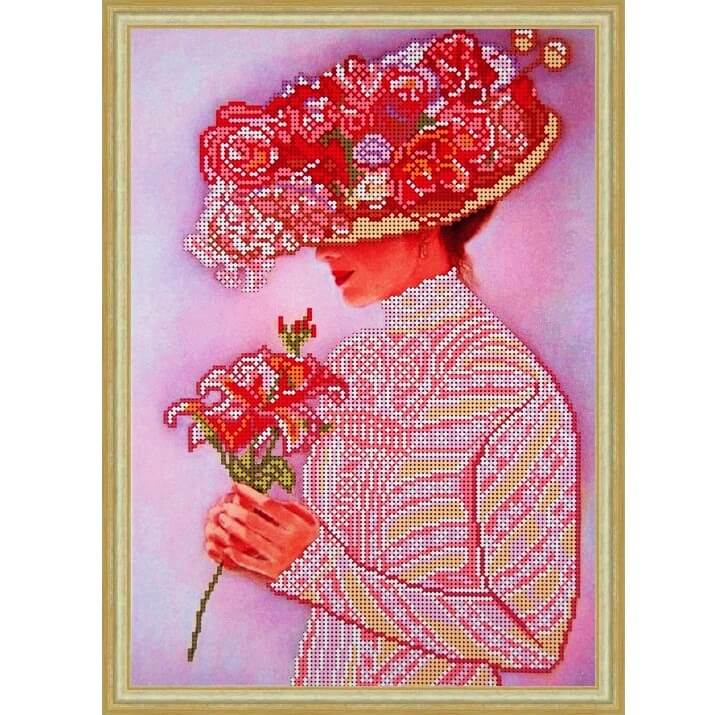 Схема для вышивки бисером Дама с цветком, 24х34см, Б-3134, I.B.Studio