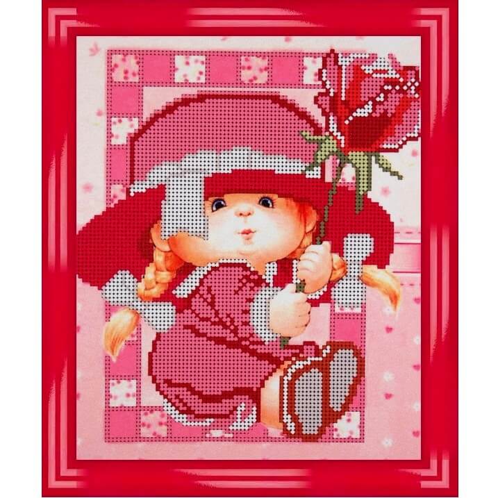 Схема для вышивки бисером Девочка с косичками ТМ I.B.Studio выполнена на габардине, бродублированном флизелином и с прооверлоченными краями. Формат А4. Количество цветов бисера - 9.