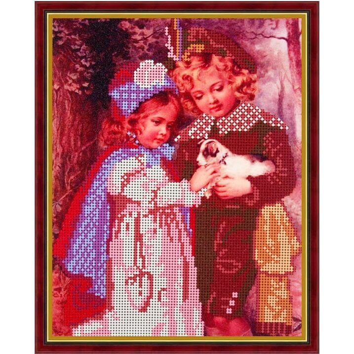 Схема для вышивки бисером Дети со щенком, 20х25см, Б-4009, I.B.Studio