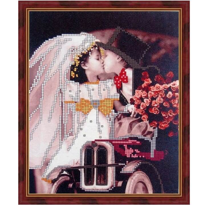 Схема для вышивки бисером Детская свадьба ТМ I.B.Studio выполнена на габардине, бродублированном флизелином и с прооверлоченными краями. Формат А4. Количество цветов бисера - 8.