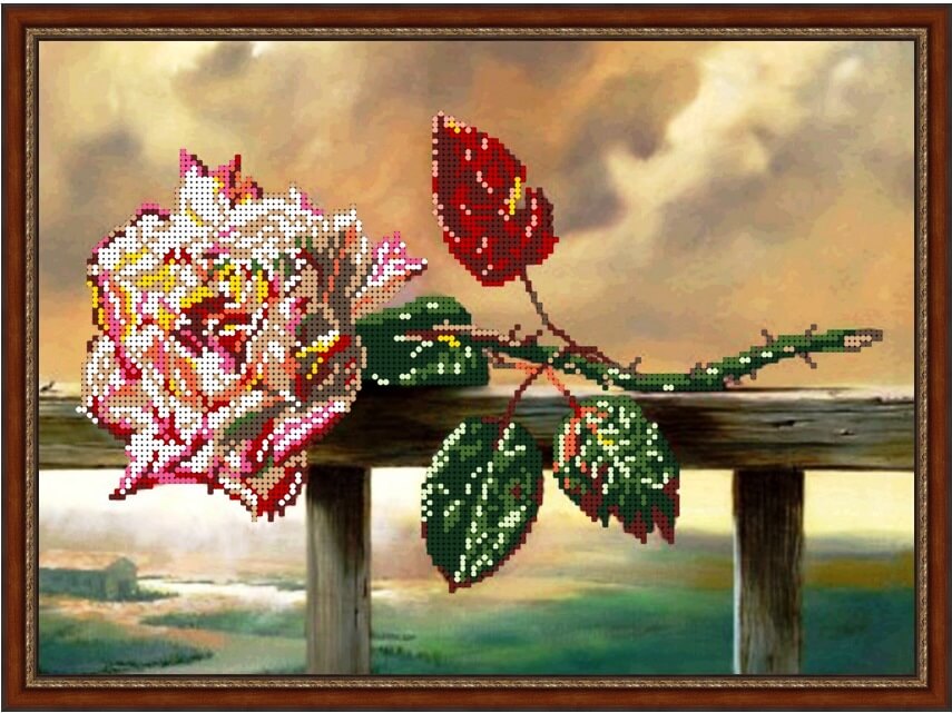 Схема для вышивки бисером Забытая роза ТМ I.B.Studio выполнена на габардине, бродублированном флизелином и с прооверлоченными краями. Формат А3. Количество цветов бисера - 12.