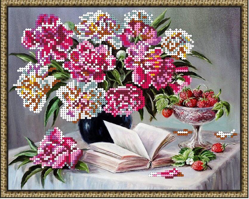 Схема для вышивки бисером Клубничный натюрморт ТМ I.B.Studio выполнена на габардине, бродублированном флизелином и с прооверлоченными краями. Формат А4. Количество цветов бисера - 8.