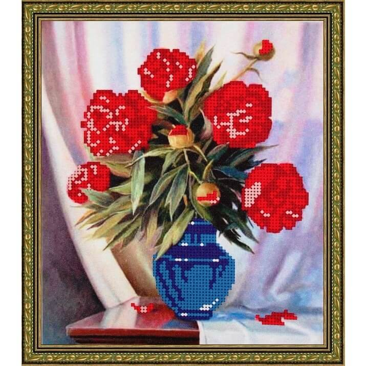 Схема для вышивки бисером Красные пионы, 19х22см, Б-4039, I.B.Studio