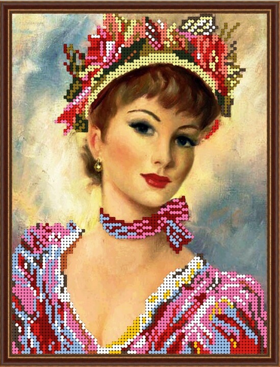 Схема для вышивки бисером Леди в розовом ТМ I.B.Studio выполнена на габардине, бродублированном флизелином и с прооверлоченными краями. Формат А4. Количество цветов бисера - 12.