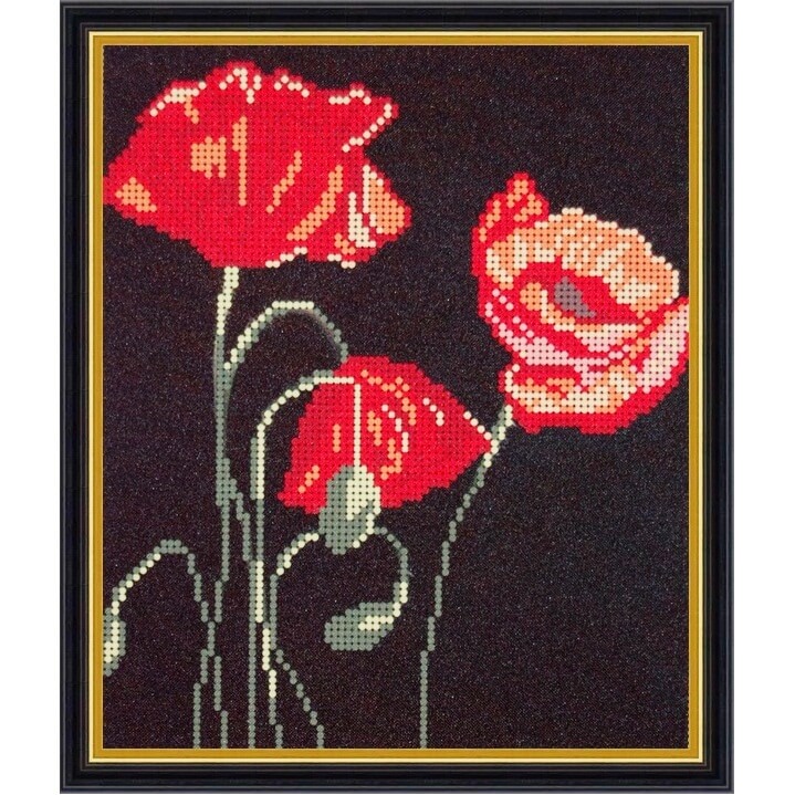 Схема для вышивки бисером Маки на черном ТМ I.B.Studio выполнена на габардине, бродублированном флизелином и с прооверлоченными краями. Формат А4. Количество цветов бисера - 8.