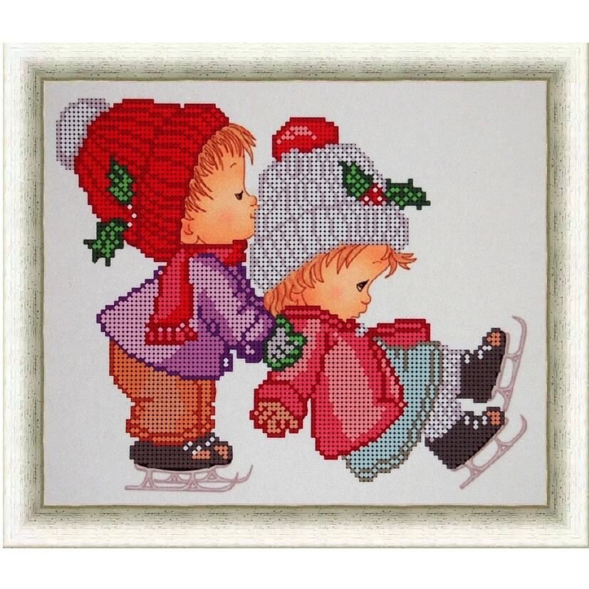 Схема для вышивки бисером Маленькие фигуристы ТМ I.B.Studio выполнена на габардине, бродублированном флизелином и с прооверлоченными краями. Формат А4. Количество цветов бисера - 17.