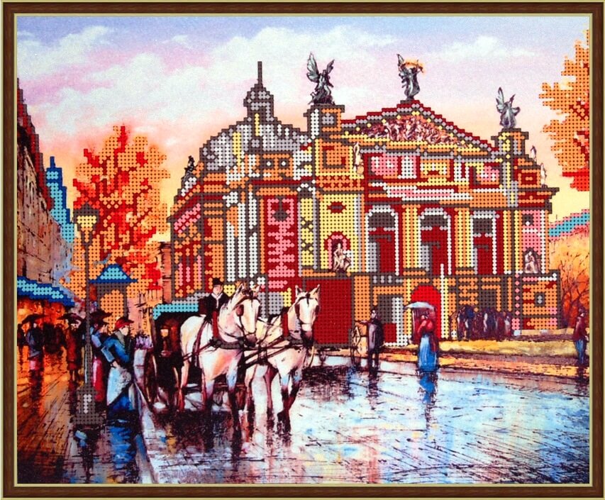 Схема для вышивки бисером Осенний Оперный театр ТМ I.B.Studio выполнена на габардине, бродублированном флизелином и с прооверлоченными краями. Формат А3. Количество цветов бисера - 12.