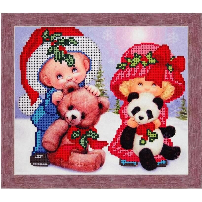 Схема для вышивки бисером Рождественские детки с мишками, 19х23см, Б-4046, I.B.Studio