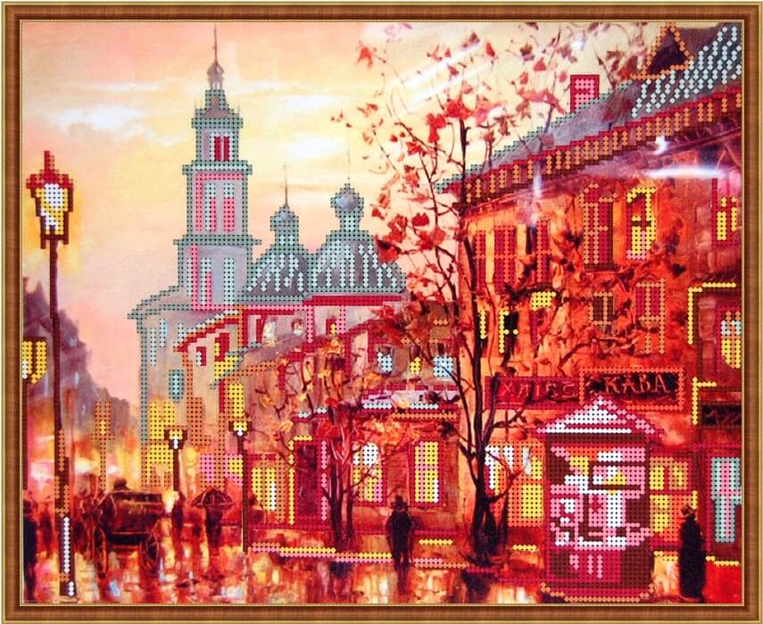 Схема для вышивки бисером Сумерки во Львове ТМ I.B.Studio выполнена на габардине, бродублированном флизелином и с прооверлоченными краями. Формат А3. Количество цветов бисера - 9.